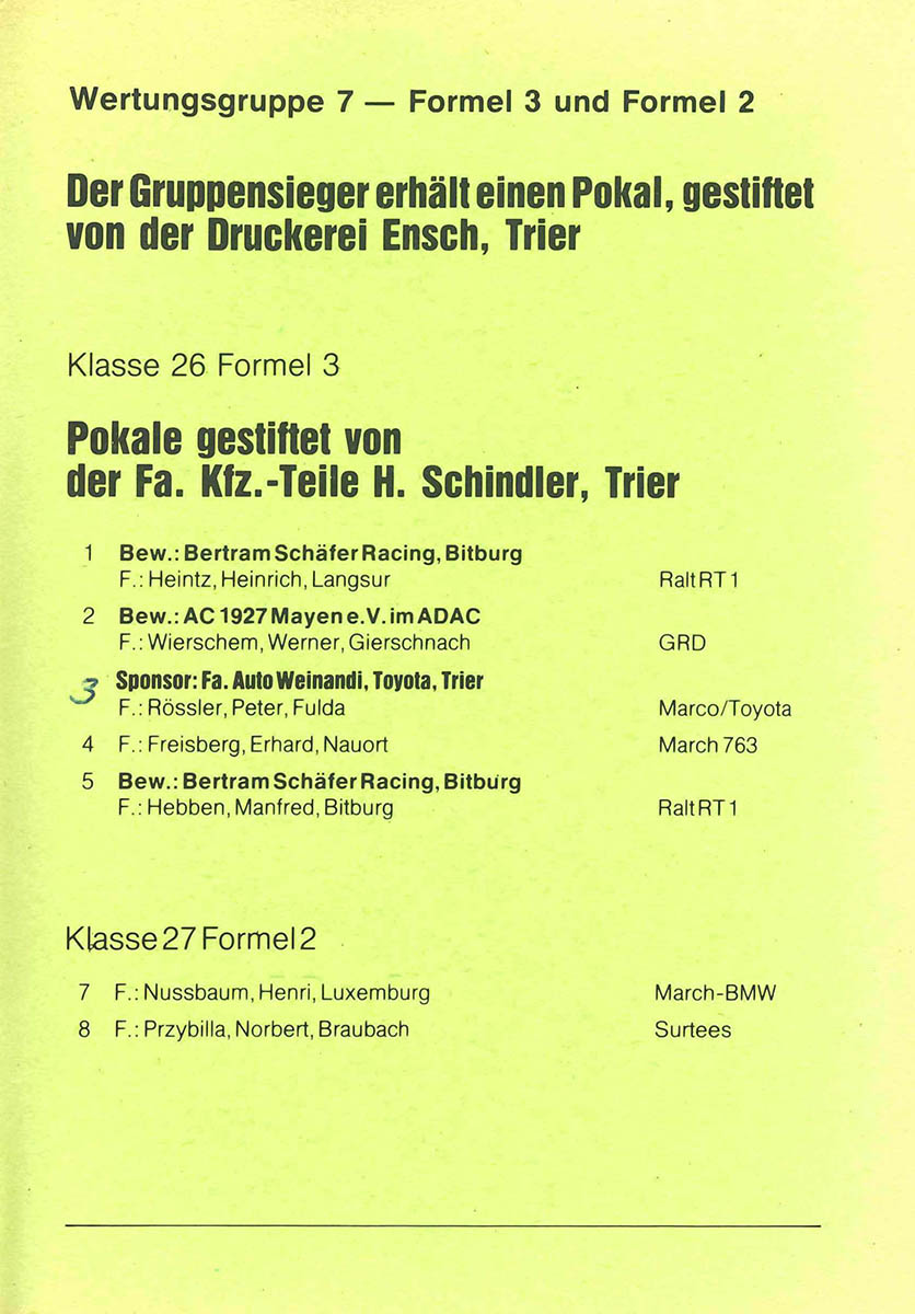 01.07.1979 - Trier Streckenskizze Programmheft Starterliste Alle Ergebnisse: Nennungsliste Ergebnis Rennen