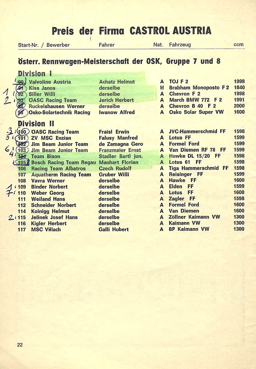 10.06.1979 - Dobratsch (3.Lauf Österreichische Rennwagen Meisterschaft) Streckenskizze Programmheft Starterliste Alle Ergebnisse: keine Formel 3 am Start
