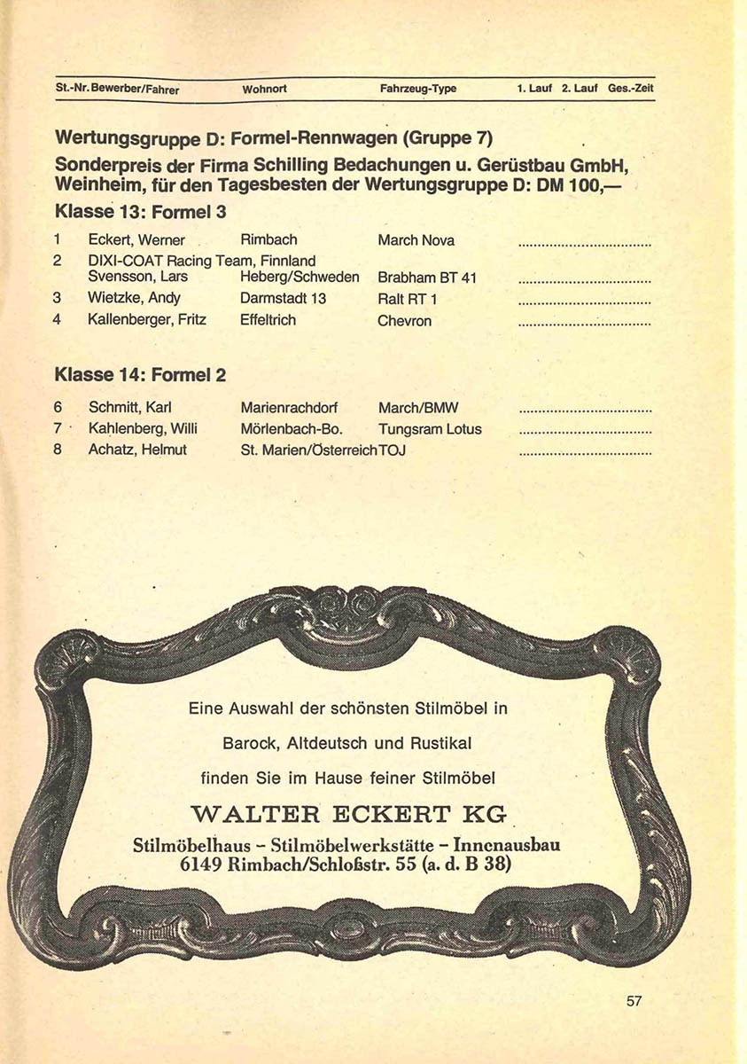 25.03.1979 - Zotzenbach Streckenskizze Programmheft Starterliste Alle Ergebnisse: Nennungsliste Ergebnis Rennen