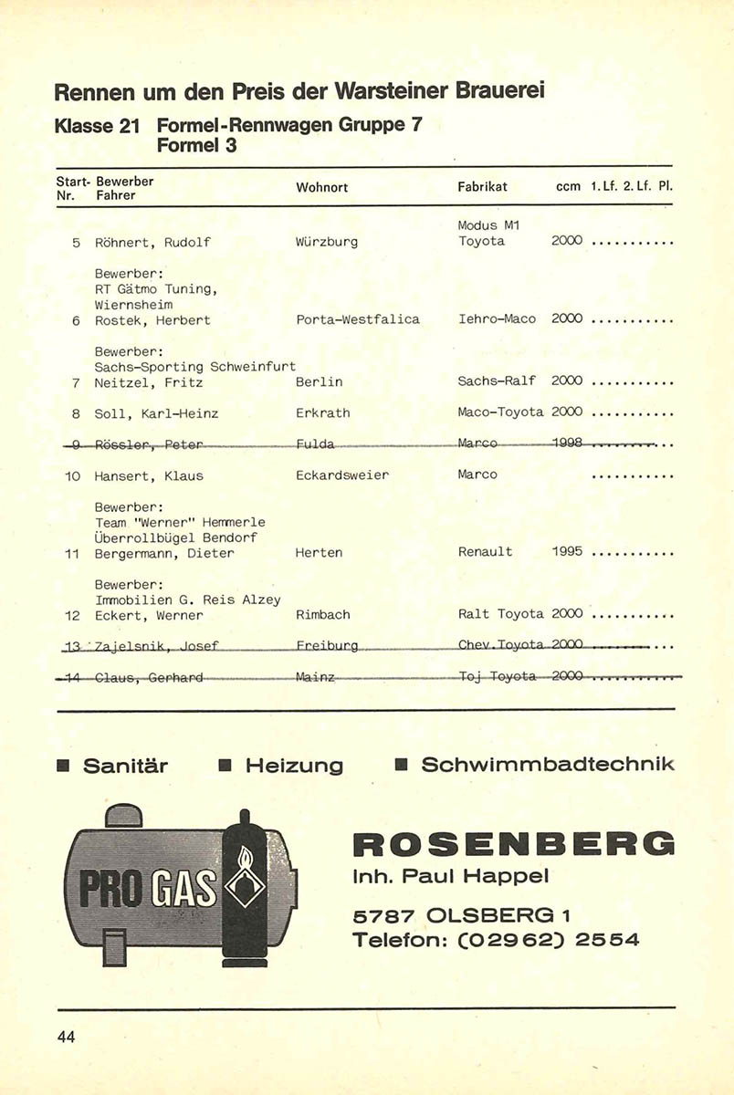 05.10.1980 - Sauerland Streckenskizze Programmheft Starterliste Alle Ergebnisse: Nennungsliste Ergebnis Rennen
