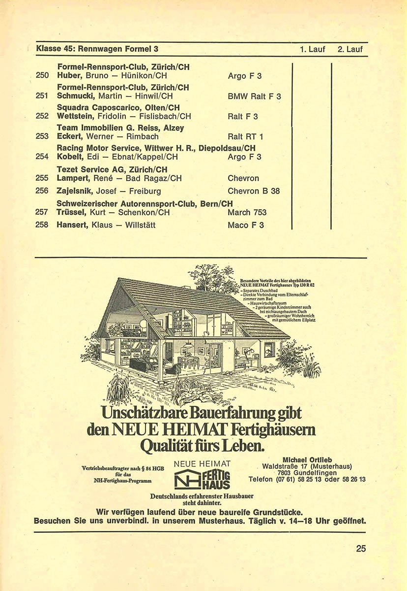 20.07.1980 - Freiburg-Schauinsland Streckenskizze Programmheft Starterliste Alle Ergebnisse: Nennungsliste Ergebnis Rennen