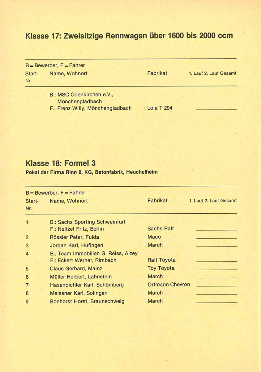 05.04.1981 - Dünsberg Streckenskizze Programmheft Starterliste Alle Ergebnisse: Nennungsliste Ergebnis Rennen