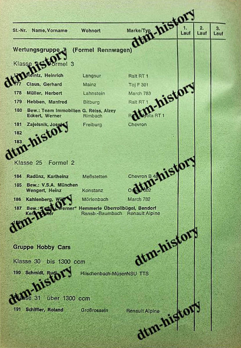 18.10.1981 - Eifel Streckenskizze Programmheft Starterliste Alle Ergebnisse: Nennungsliste Ergebnis Rennen