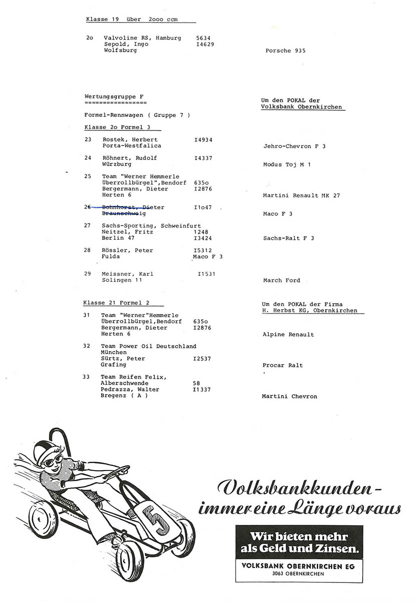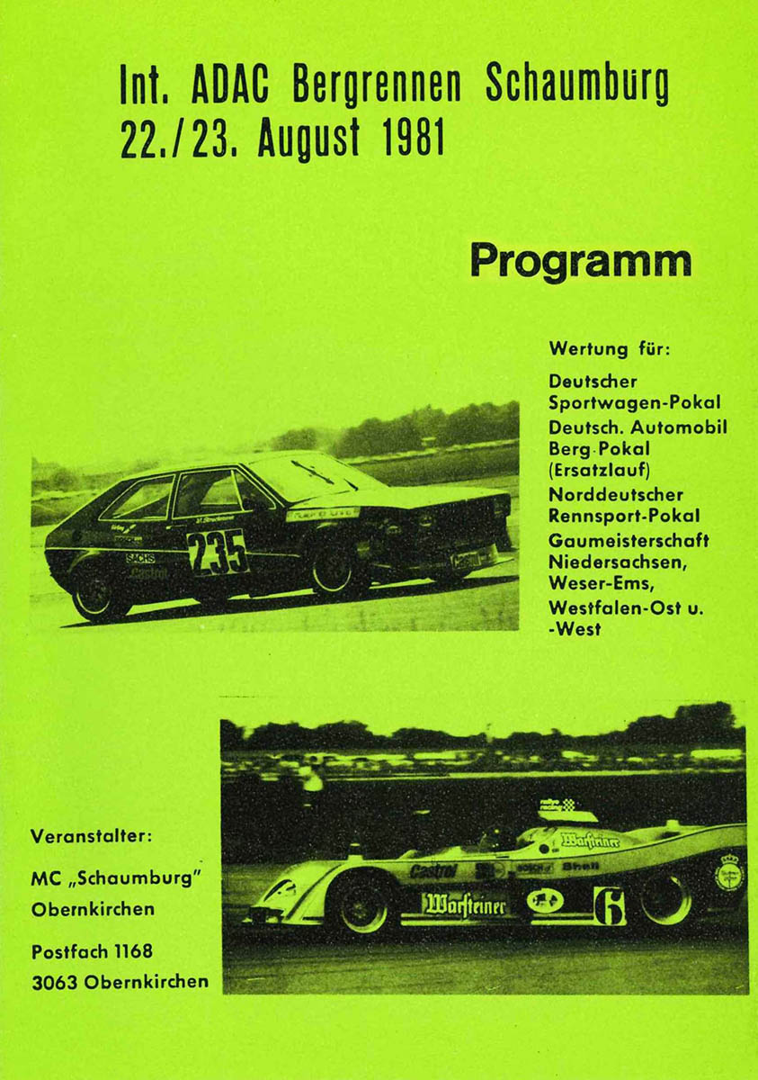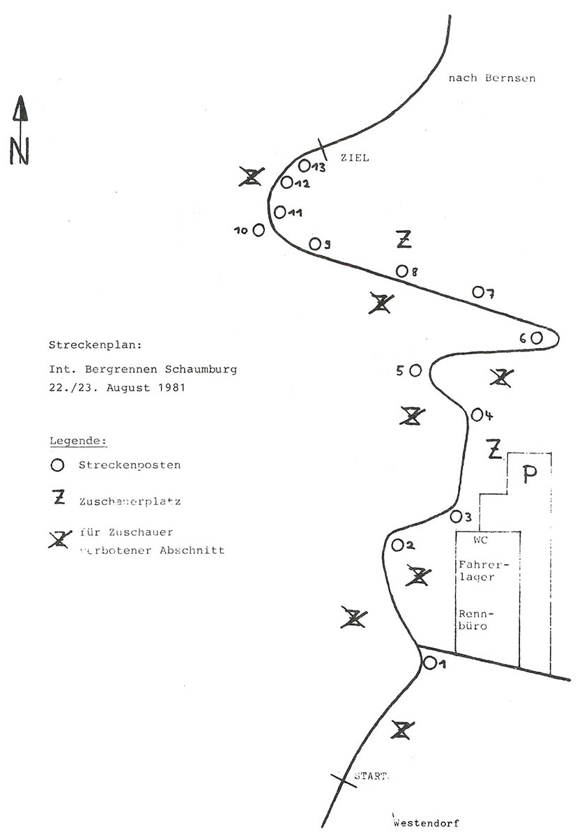 23.08.1981 - Schaumburg Streckenskizze Programmheft Starterliste Alle Ergebnisse: Nennungsliste Ergebnis Rennen