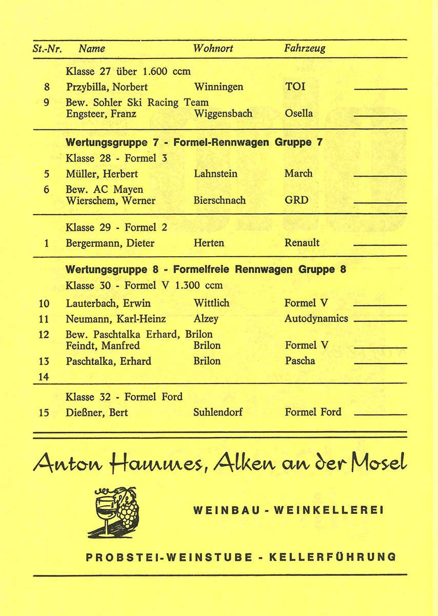 26.04.1981 - Rhein-Mosel Streckenskizze Programmheft Starterliste Alle Ergebnisse: Nennungsliste Ergebnis Rennen