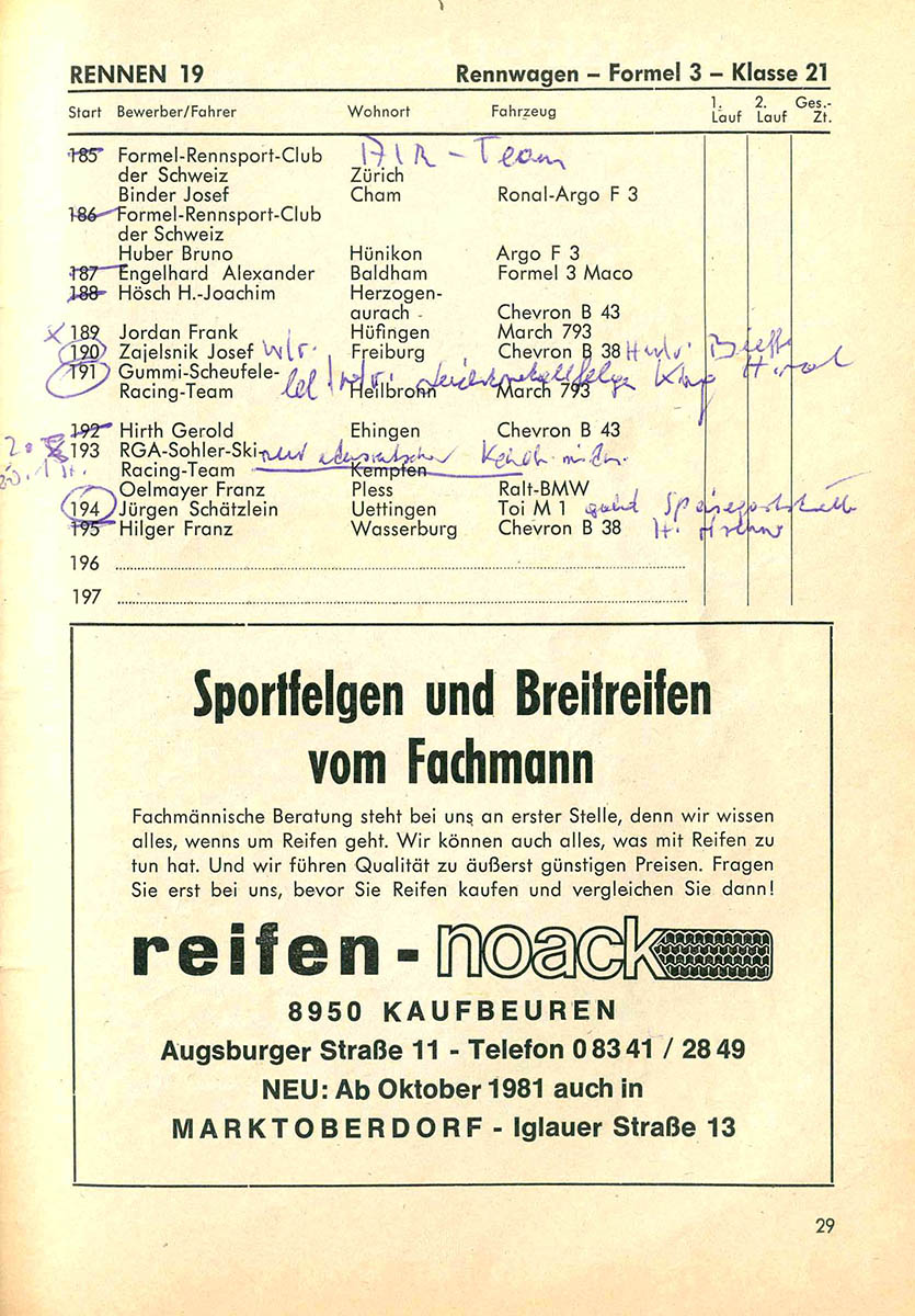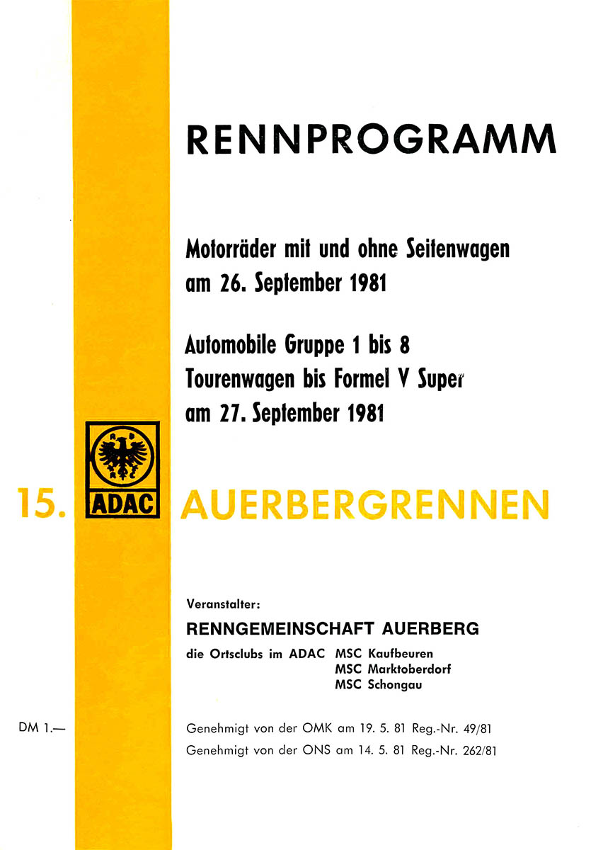 27.09.1981 - Auerberg Streckenskizze Programmheft Starterliste Alle Ergebnisse: Nennungsliste Ergebnis Rennen