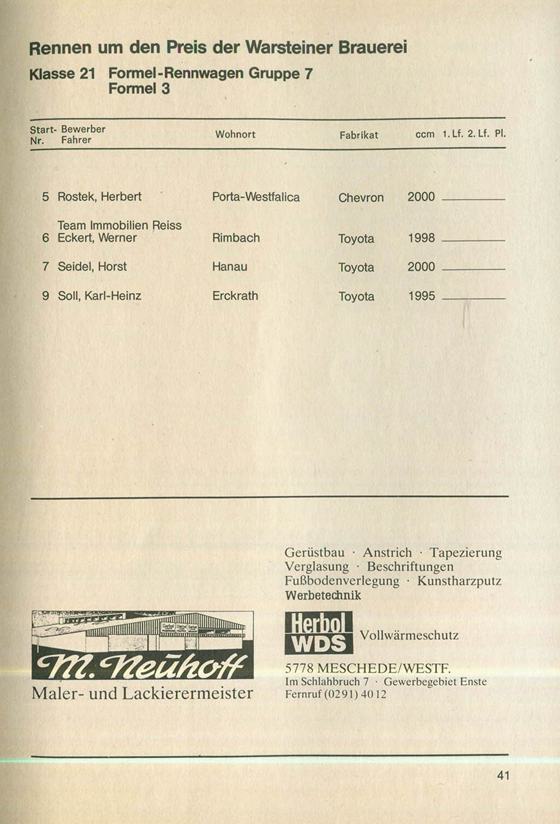 27.09.1981 - Sauerland Streckenskizze Programmheft Starterliste Alle Ergebnisse: Nennungsliste Ergebnis Rennen