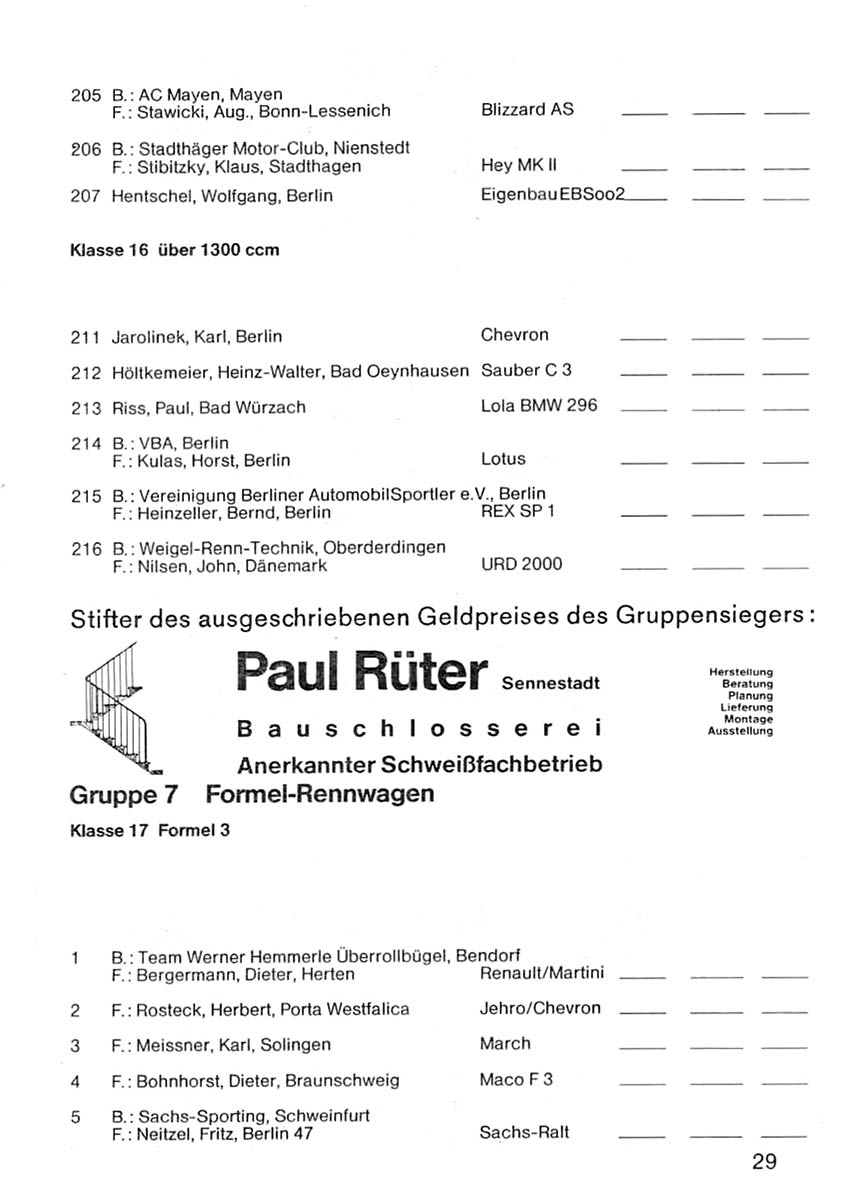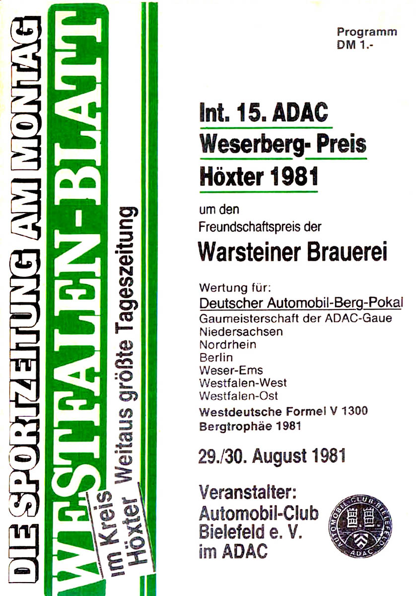 30.08.1981 - Höxter Streckenskizze Programmheft Starterliste Alle Ergebnisse: Nennungsliste Ergebnis Rennen