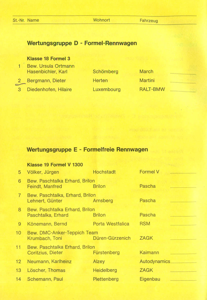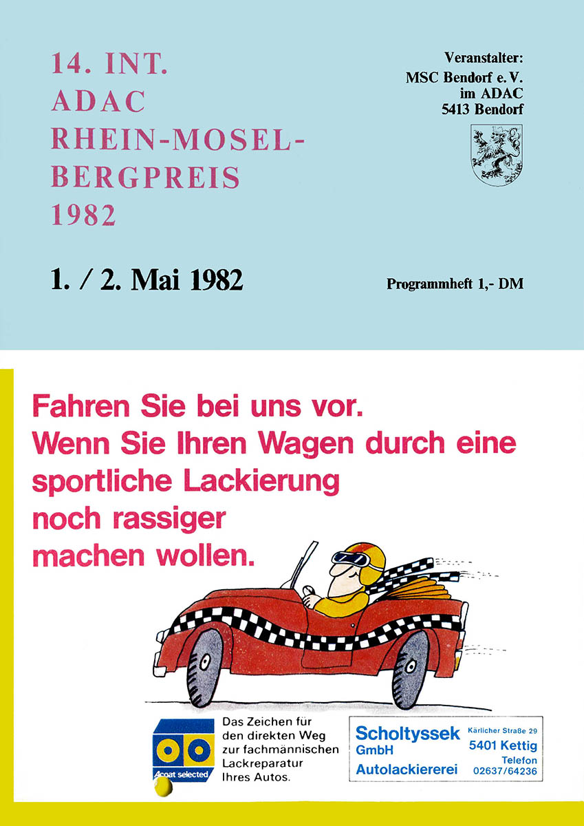 02.05.1982 - Rhein-Mosel Streckenskizze Programmheft Starterliste Alle Ergebnisse: Nennungsliste Ergebnis Rennen