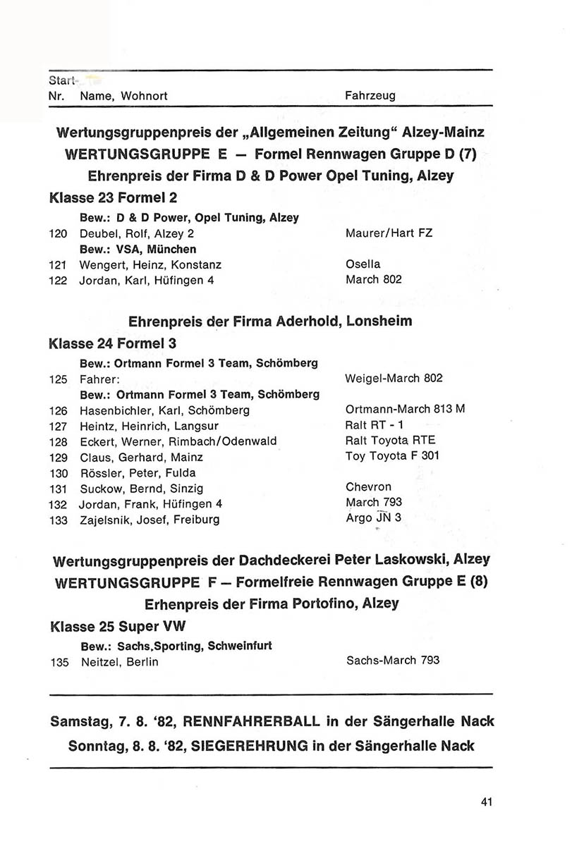 08.08.1982 - Teufelsrutsch Streckenskizze Programmheft Starterliste Alle Ergebnisse: Nennungsliste Ergebnis Rennen