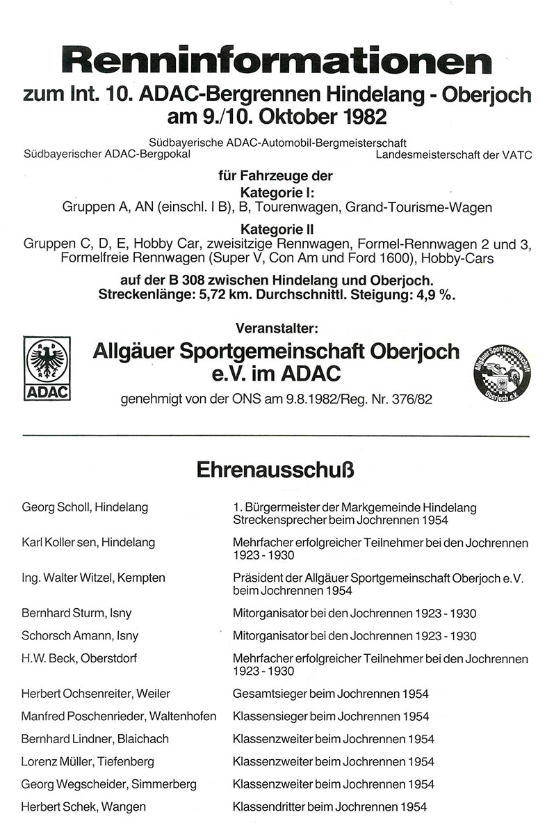 10.10.1982 - Oberjoch Streckenskizze Programmheft Starterliste Alle Ergebnisse: Nennungsliste Ergebnis Rennen