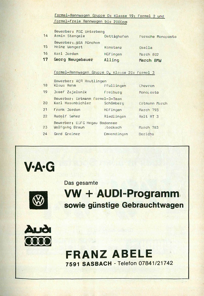 15.08.1982 - Ottenhöfen Streckenskizze Programmheft Starterliste Alle Ergebnisse: Nennungsliste Ergebnis Rennen