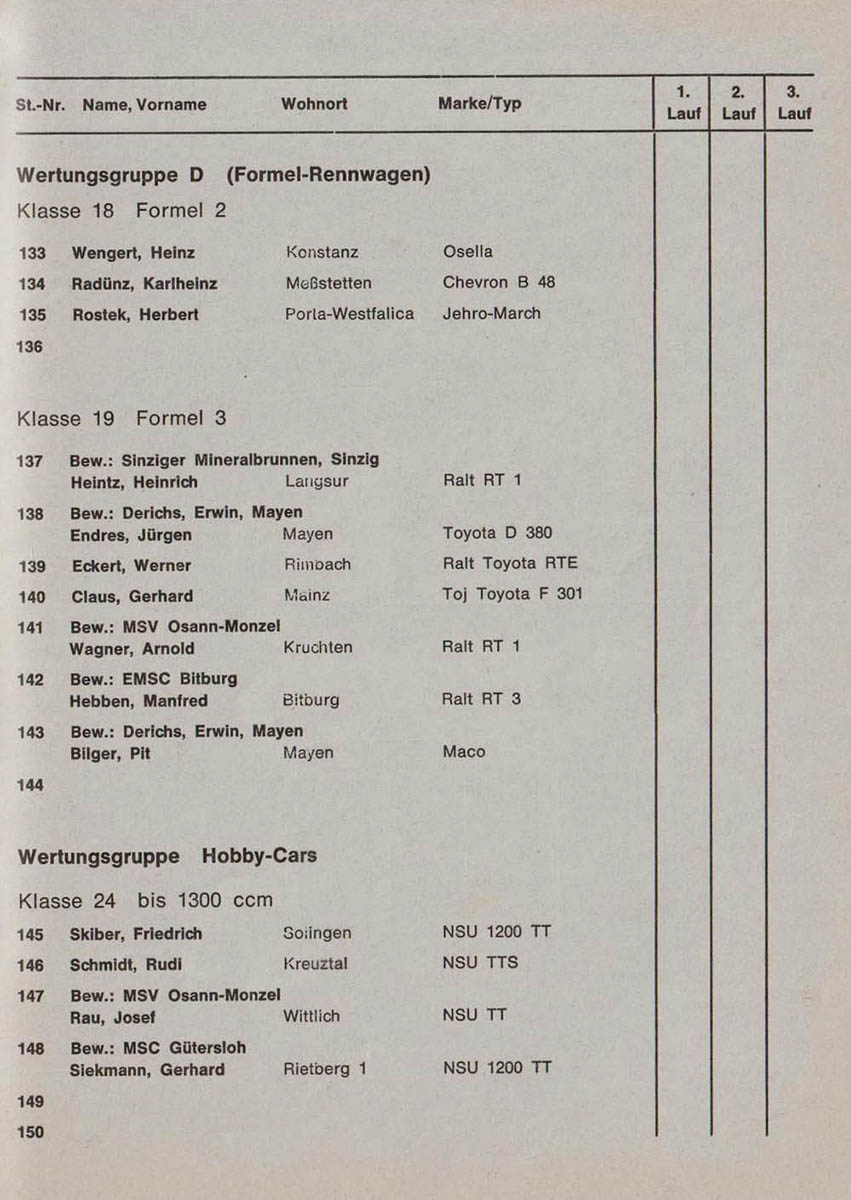 17.10.1982 - Eifel Streckenskizze Programmheft Starterliste Alle Ergebnisse: Nennungsliste Ergebnis Rennen
