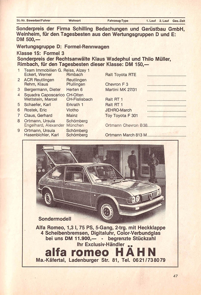 21.03.1982 - Zotzenbach Streckenskizze Programmheft Starterliste Alle Ergebnisse: Nennungsliste Ergebnis Rennen