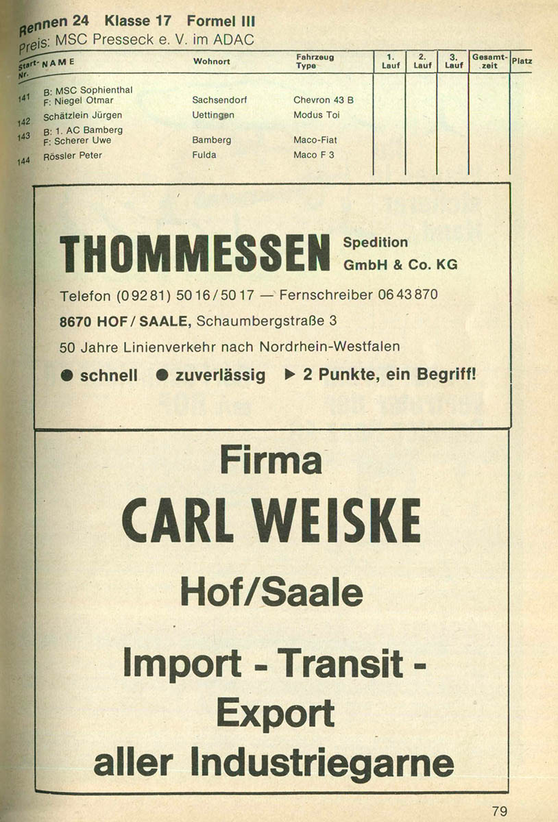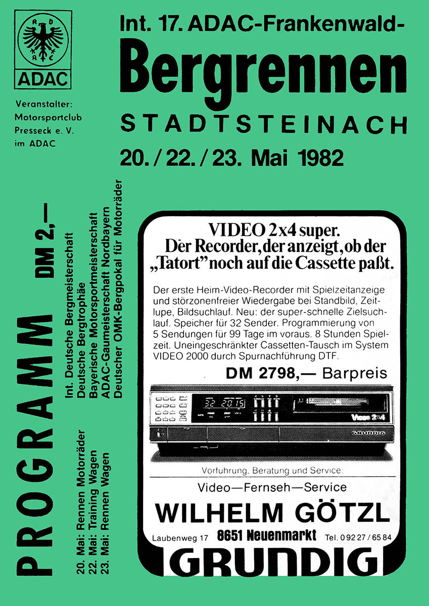 23.05.1982 - Frankenwald Streckenskizze Programmheft Starterliste Alle Ergebnisse: Nennungsliste Ergebnis Rennen