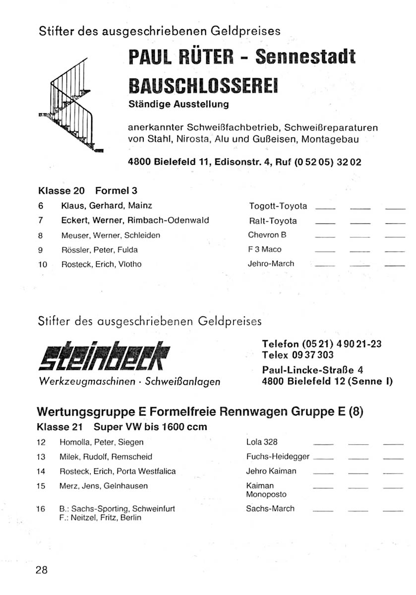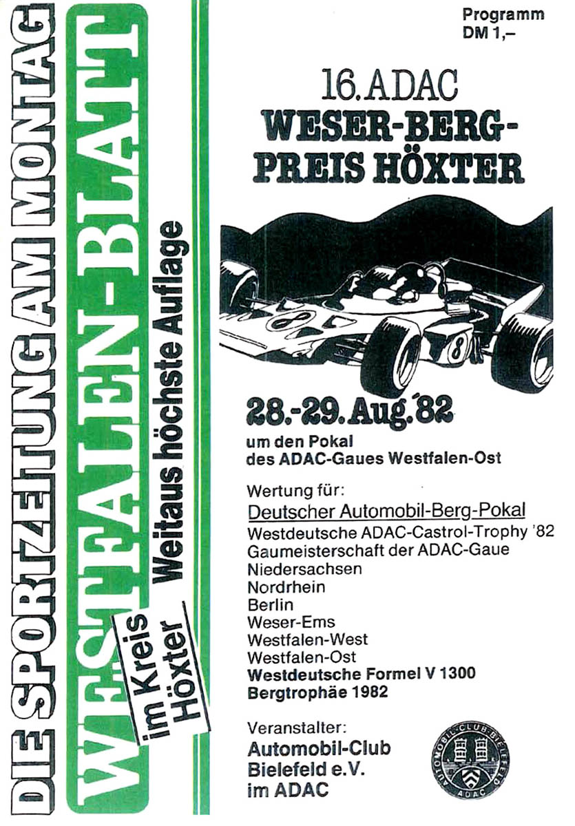 29.08.1982 - Höxter Streckenskizze Programmheft Starterliste Alle Ergebnisse: Nennungsliste Ergebnis Rennen