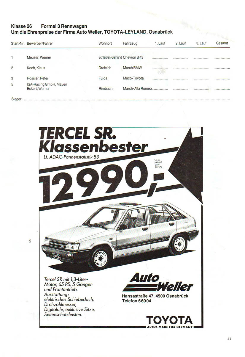 02.09.1984 - Osnabrück Streckenskizze Programmheft Starterliste Alle Ergebnisse: Nennungsliste Ergebnis Rennen