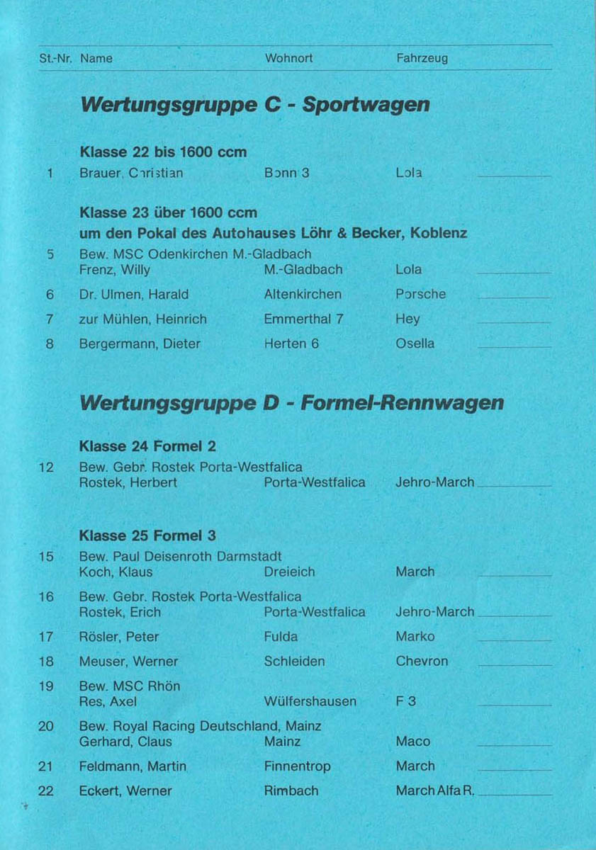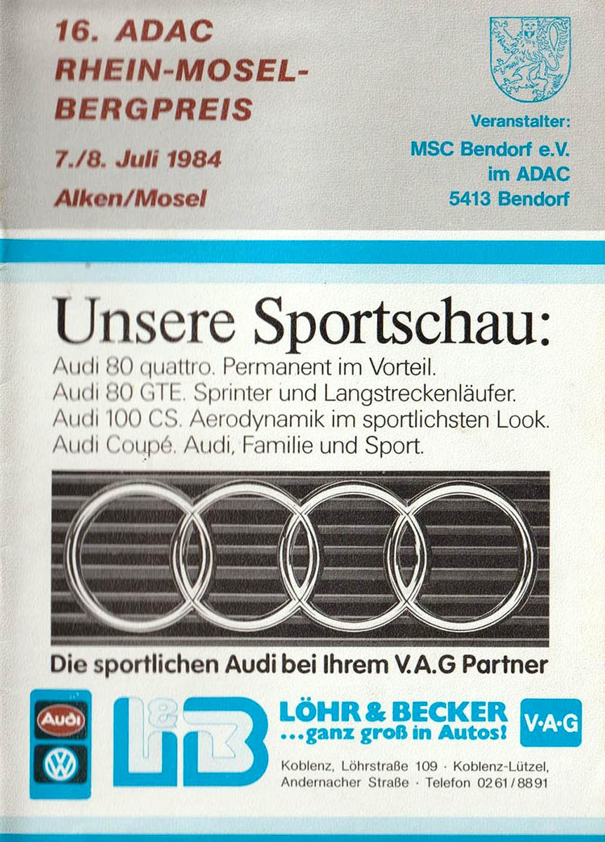 08.07.1984 - Rhein-Mosel Streckenskizze Programmheft Starterliste Alle Ergebnisse: Nennungsliste Ergebnis Rennen