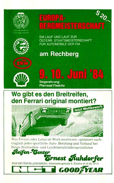 10.06.1984 - Rechberg (3.Lauf Österreichische Rennwagen Meisterschaft) Streckenskizze Programmheft Alle Ergebnisse: keine Formel 3 am Start