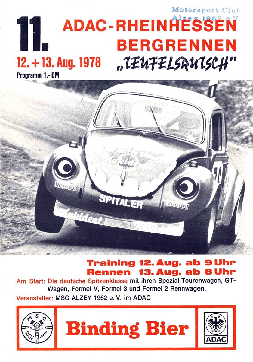 13.08.1978 - Teufelsrutsch Streckenskizze Programmheft Starterliste Alle Ergebnisse: Nennungsliste Ergebnis Rennen
