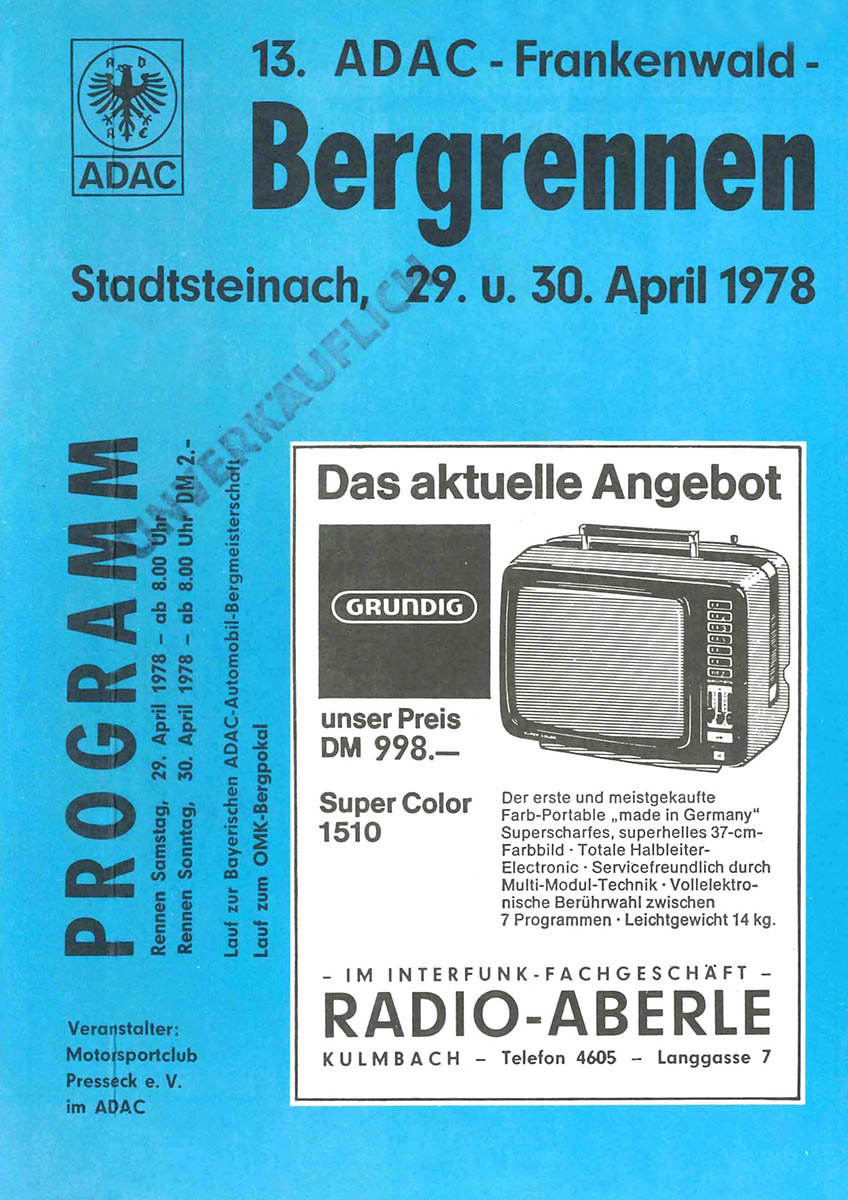 30.04.1978 - Frankenwald Streckenskizze Programmheft Starterliste Alle Ergebnisse: Nennungsliste Ergebnis Rennen