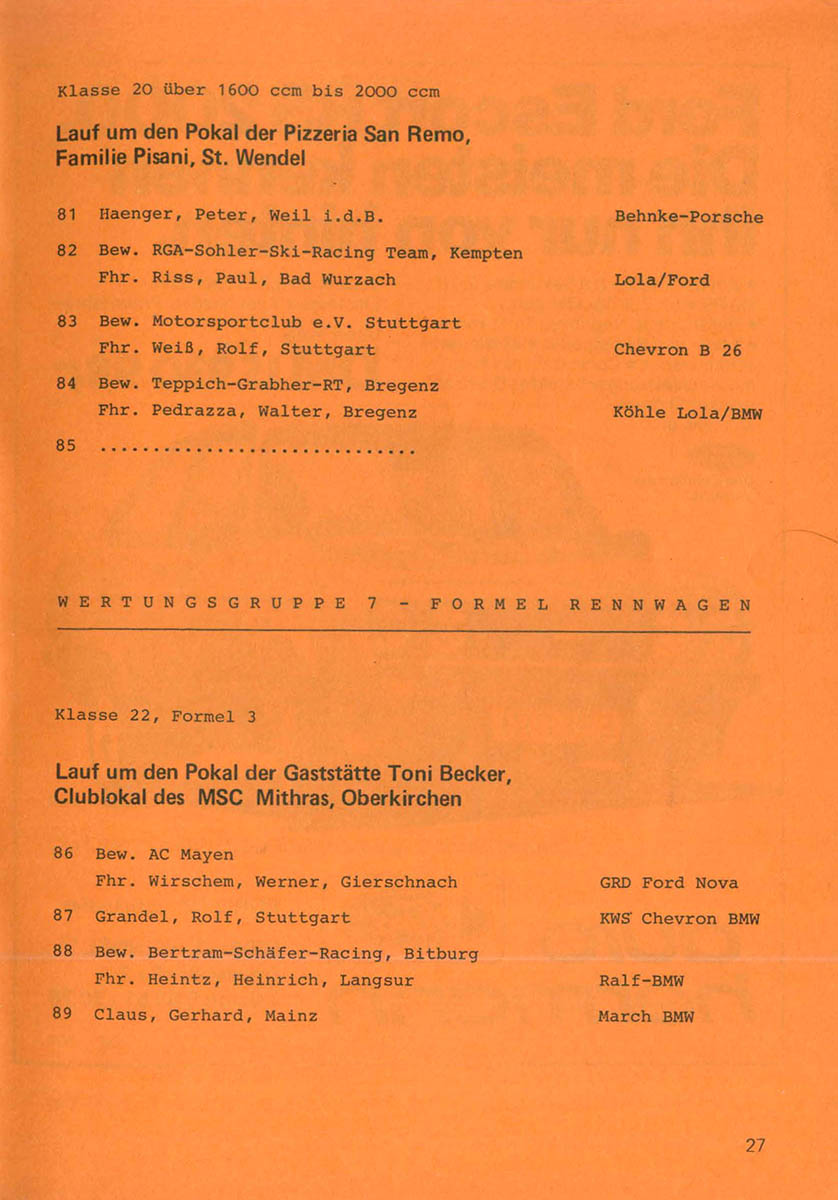 22.07.1979 - Teufelskopf Streckenskizze Programmheft Starterliste Alle Ergebnisse: Nennungsliste Ergebnis Rennen