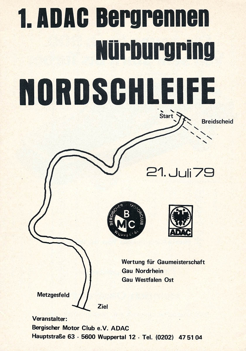 21.07.1979 - Nürburgring Berg Streckenskizze Ausschreibung Starterliste Alle Ergebnisse: Nennungsliste Ergebnis Rennen