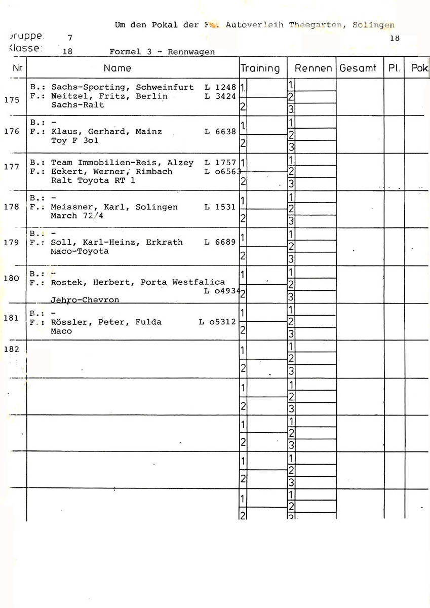 20.09.1981 - Klingenring Streckenskizze Programmheft Starterliste Alle Ergebnisse: Nennungsliste Ergebnis Rennen