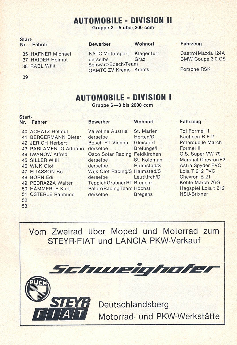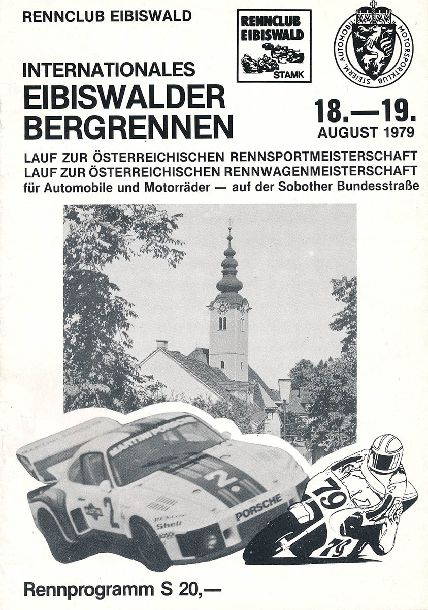 19.08.1979 - Eibiswald (6.Lauf Österreichische Rennwagen Meisterschaft) Streckenskizze Programmheft Starterliste Alle Ergebnisse: keine Formel 3 am Start