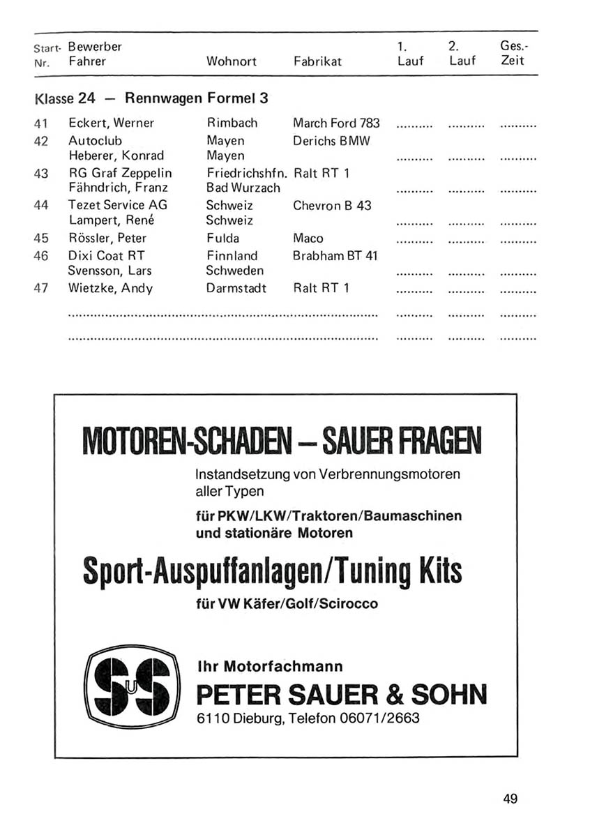 29.04.1979 - Krähberg Streckenskizze Programmheft Starterliste Alle Ergebnisse: Nennungsliste Ergebnis Rennen