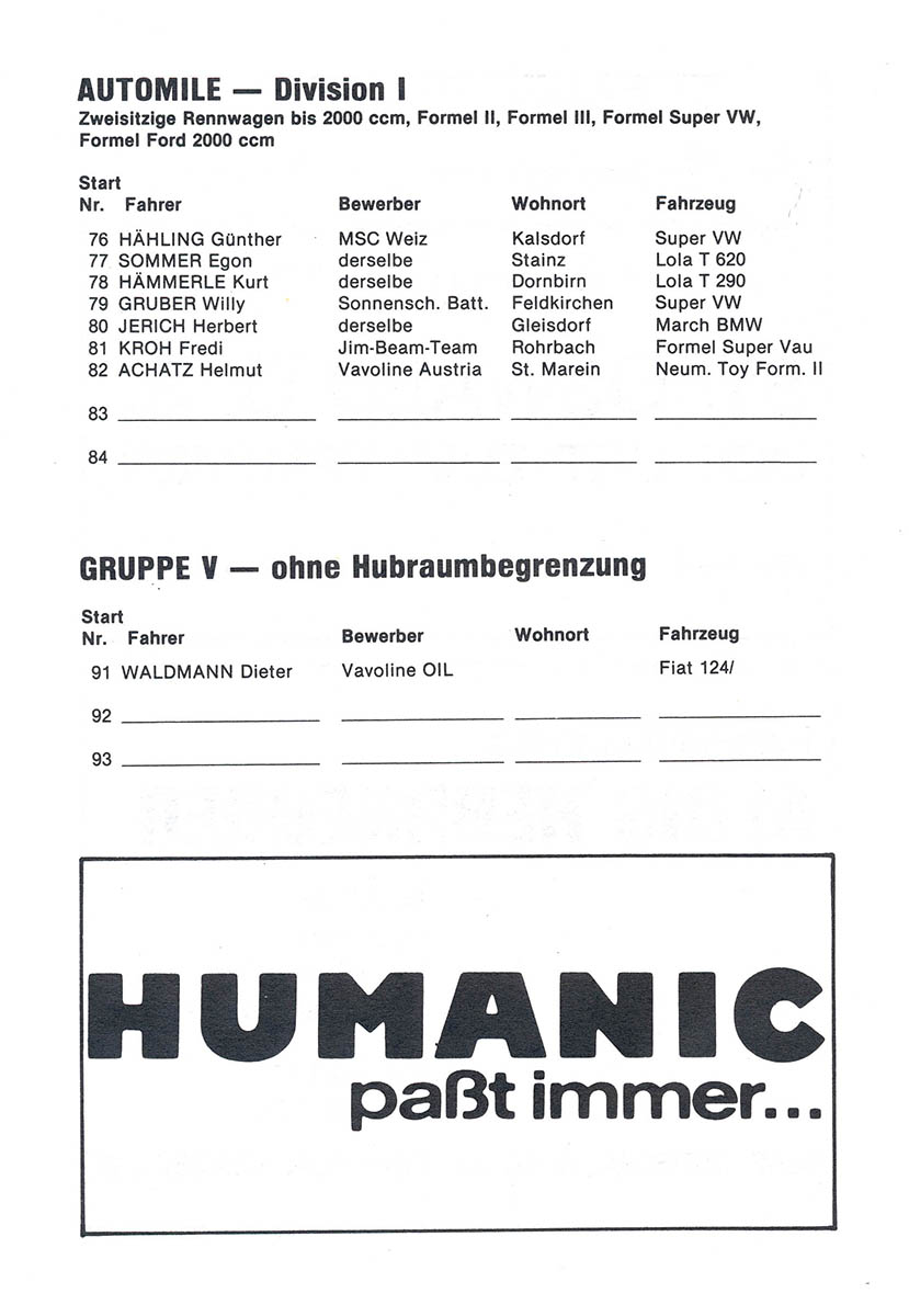 03.08.1980 - Eibiswald (4.Lauf Österreichische Rennwagen Meisterschaft) Streckenskizze Programmheft Starterliste Alle Ergebnisse: keine Formel 3 am Start