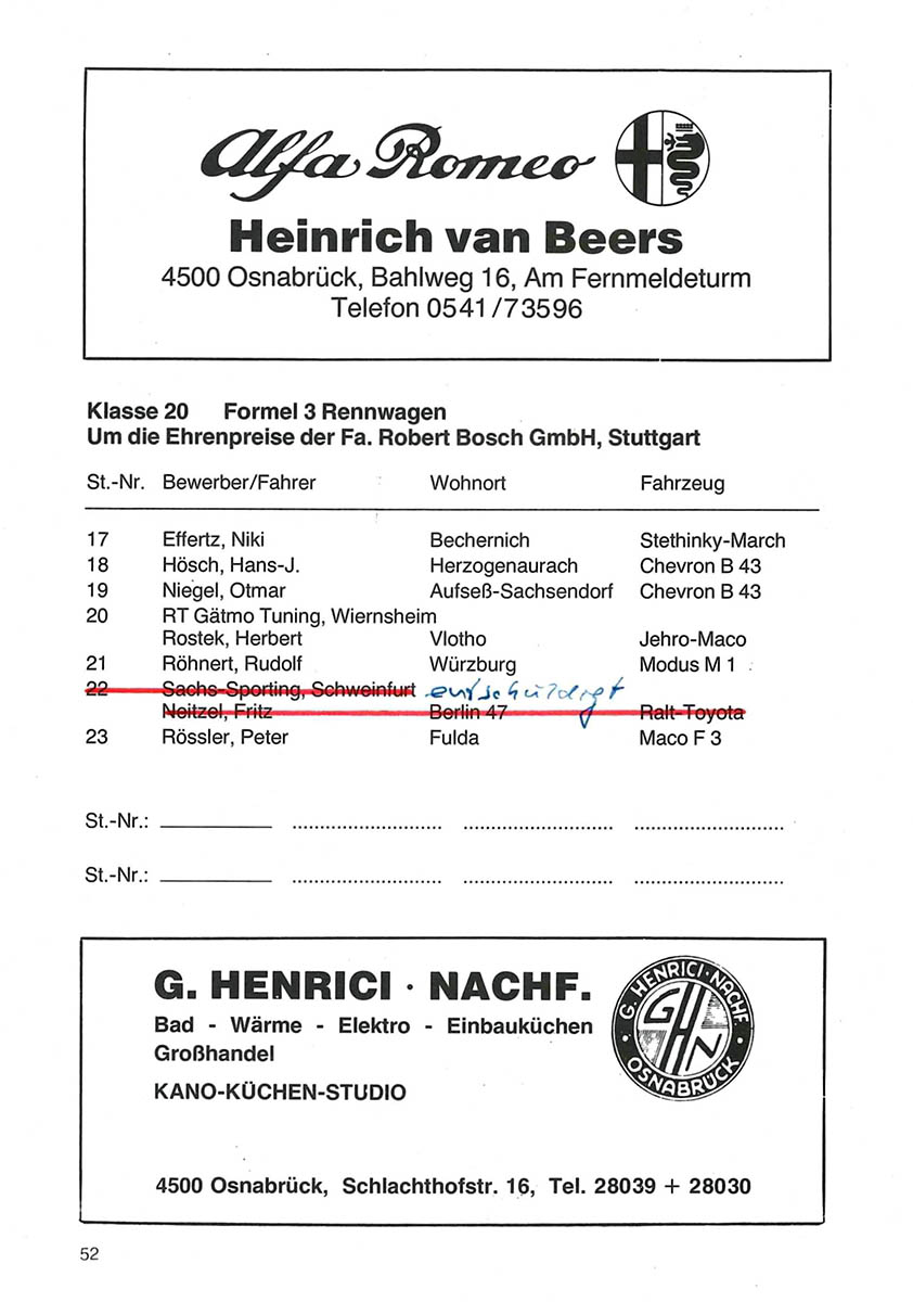 03.08.1980 - Osnabrück Streckenskizze Programmheft Starterliste Alle Ergebnisse: Nennungsliste Ergebnis Rennen