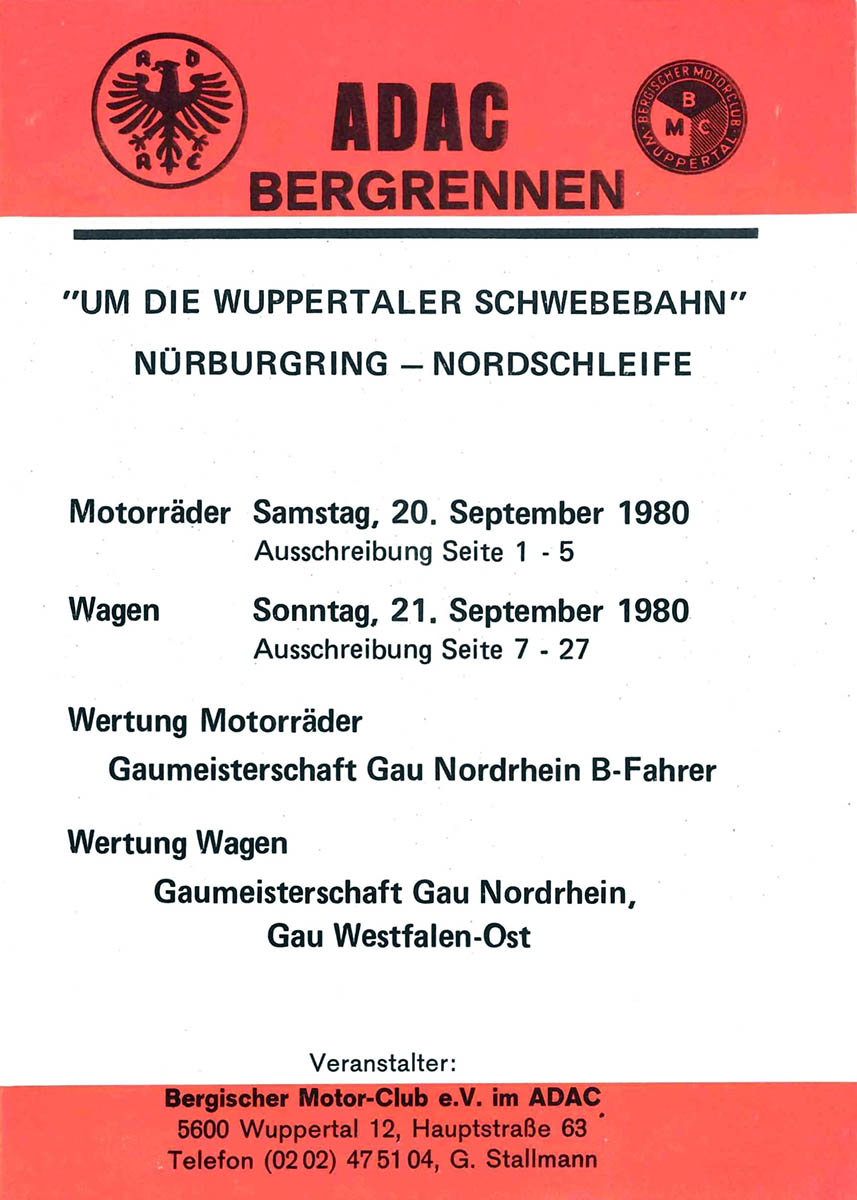 21.09.1980 - Nürburgring Berg Streckenskizze Programmheft Starterliste Alle Ergebnisse: Nennungsliste Ergebnis Rennen