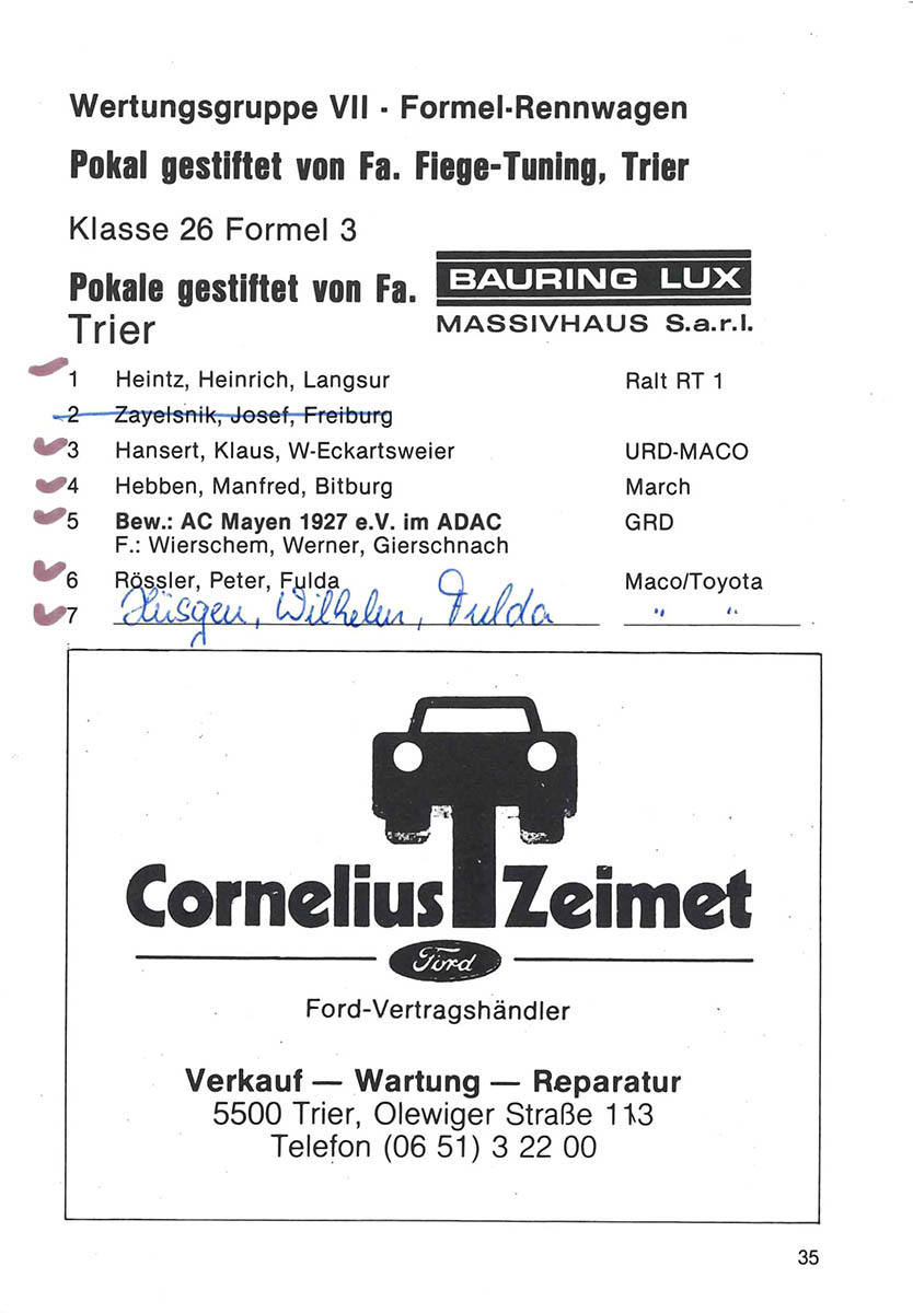 29.06.1980 - Trier Streckenskizze Programmheft Starterliste Alle Ergebnisse: Nennungsliste Ergebnis Rennen