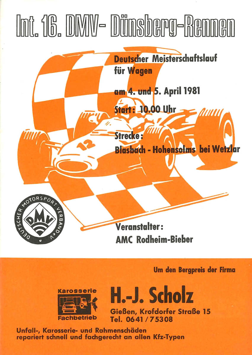 05.04.1981 - Dünsberg Streckenskizze Programmheft Starterliste Alle Ergebnisse: Nennungsliste Ergebnis Rennen