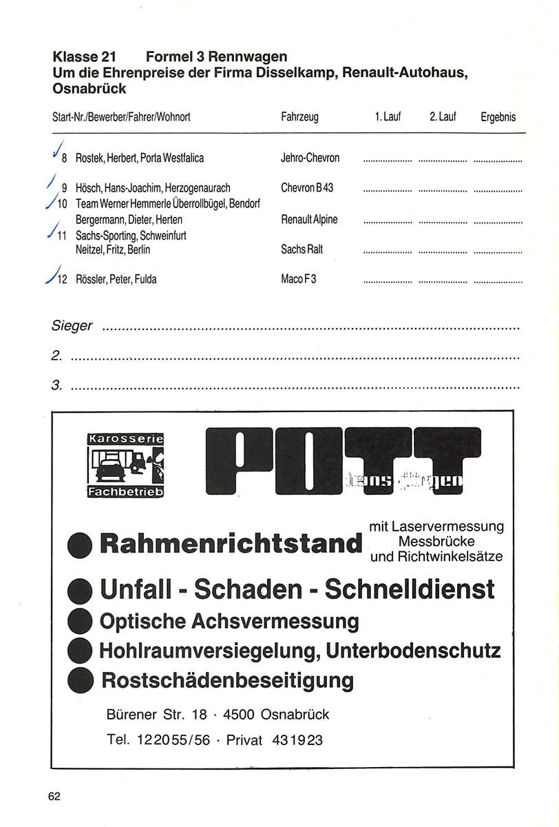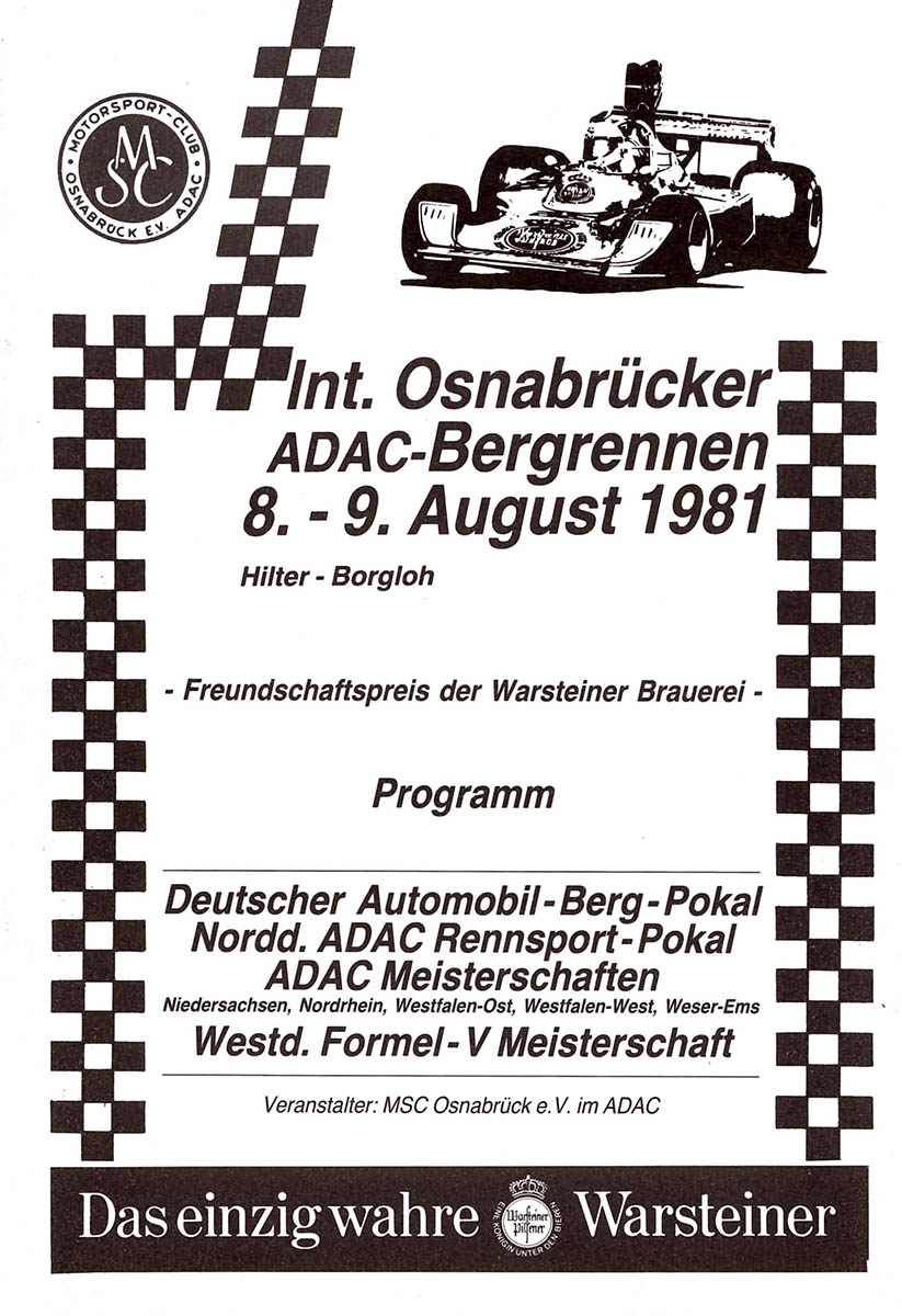 09.08.1981 - Osnabrück Streckenskizze Programmheft Starterliste Alle Ergebnisse: Nennungsliste Ergebnis Rennen