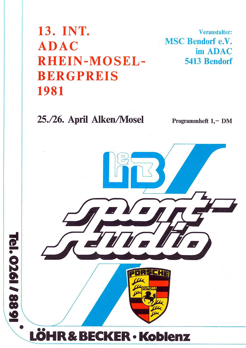 26.04.1981 - Rhein-Mosel Streckenskizze Programmheft Starterliste Alle Ergebnisse: Nennungsliste Ergebnis Rennen