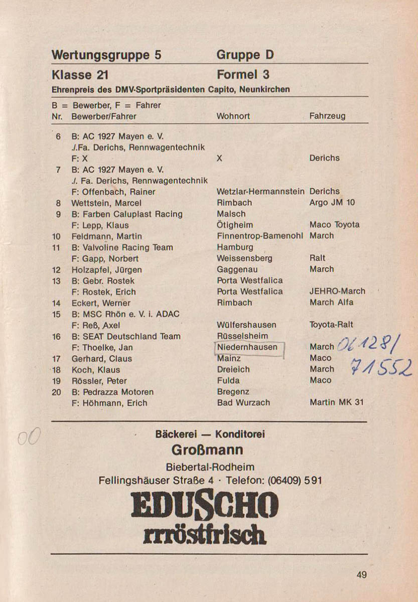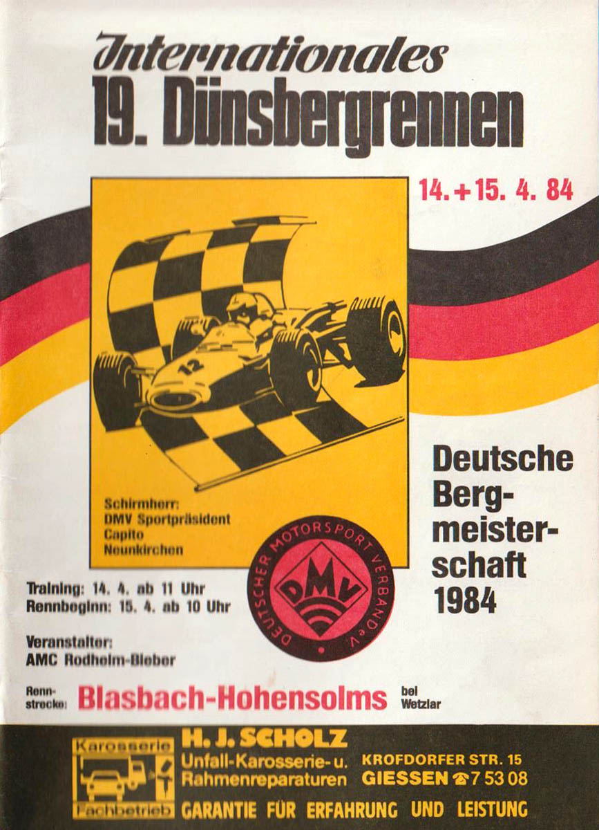 15.04.1984 - Dünsberg Streckenskizze Programmheft Starterliste Alle Ergebnisse: Nennungsliste Ergebnis Rennen
