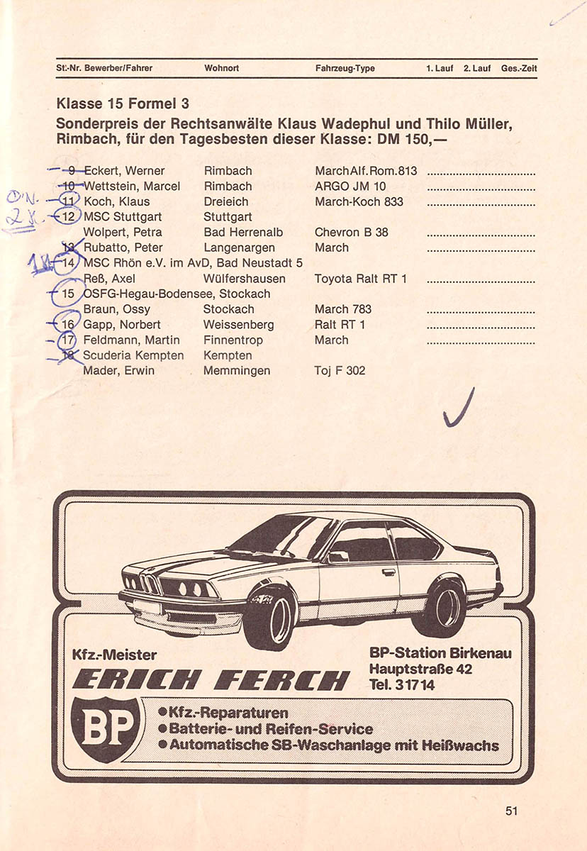 25.03.1984 - Zotzenbach Streckenskizze Programmheft Starterliste Alle Ergebnisse: Nennungsliste Ergebnis Rennen