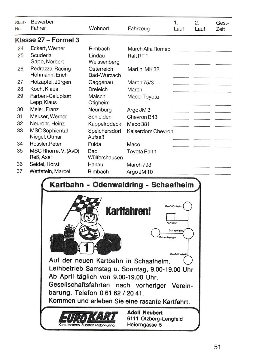 29.04.1984 - Krähberg Streckenskizze Programmheft Starterliste Alle Ergebnisse: Nennungsliste Ergebnis Rennen