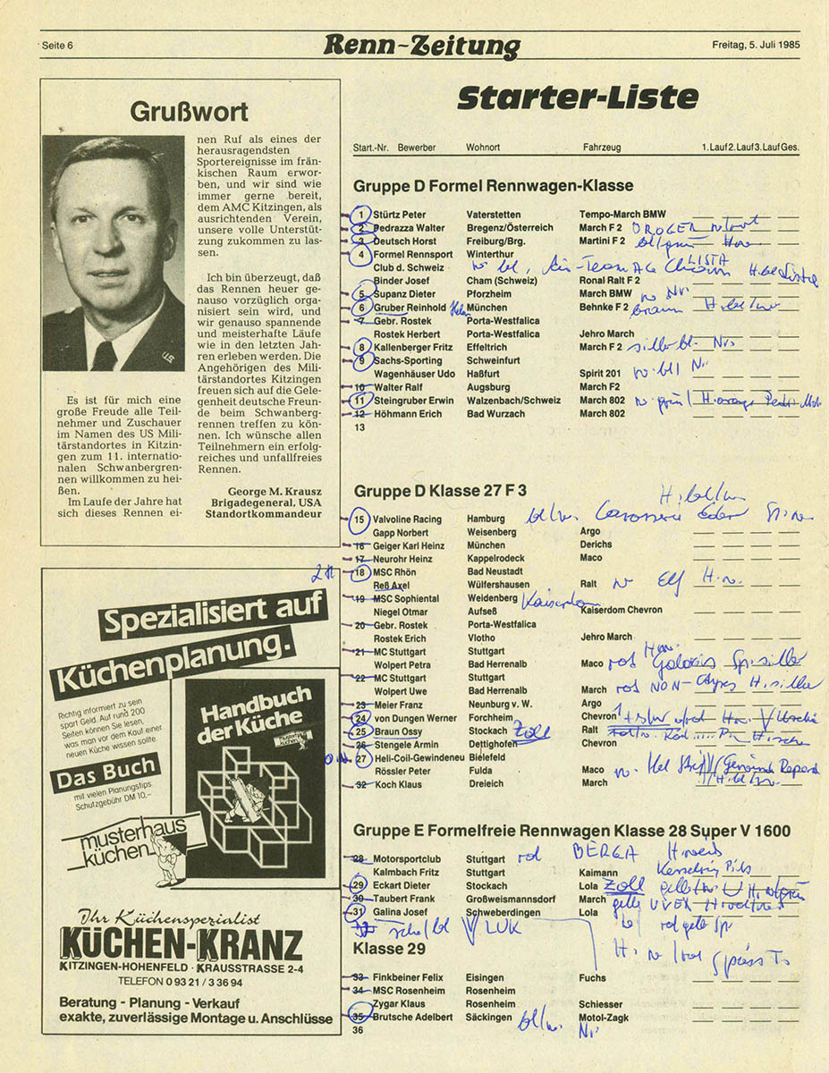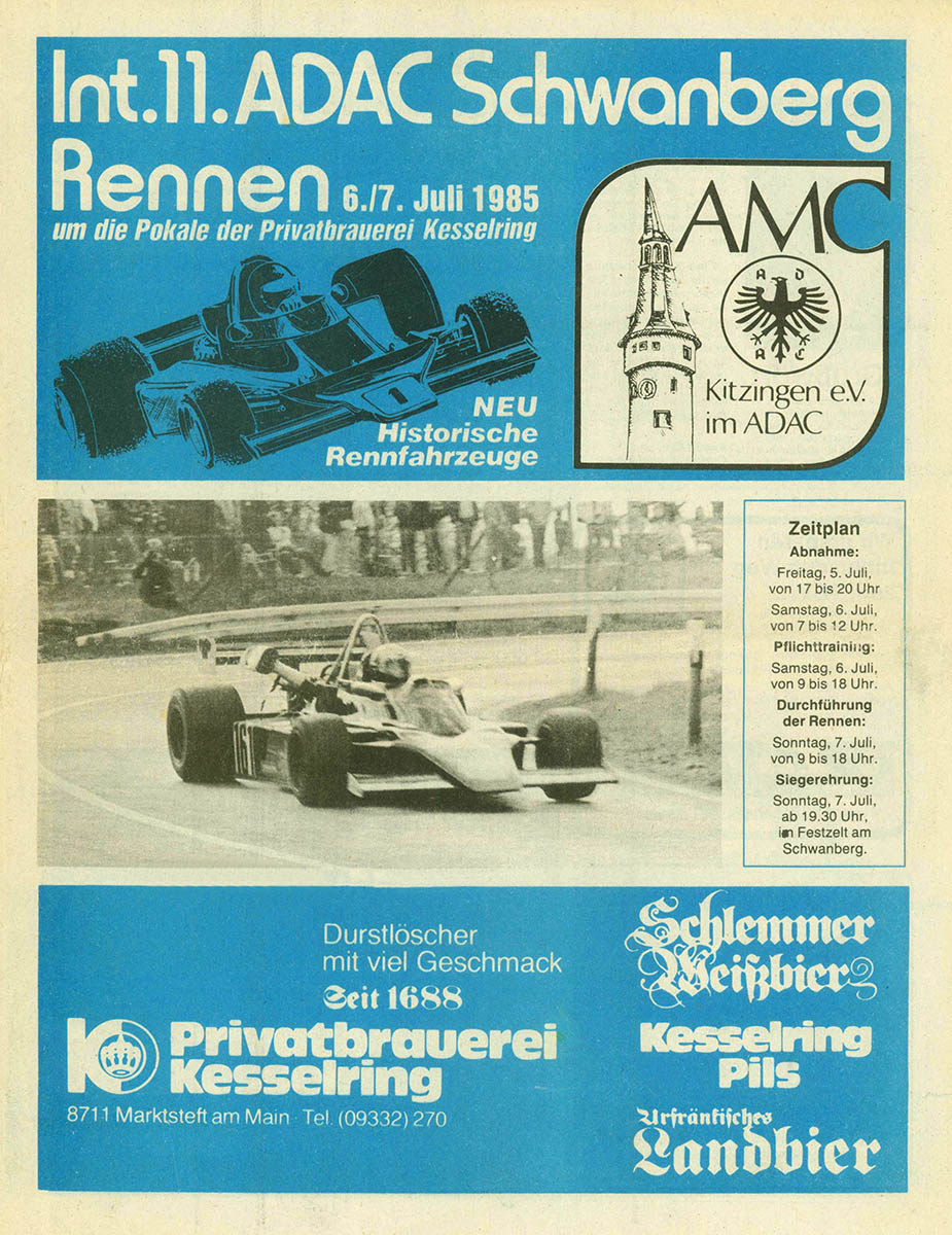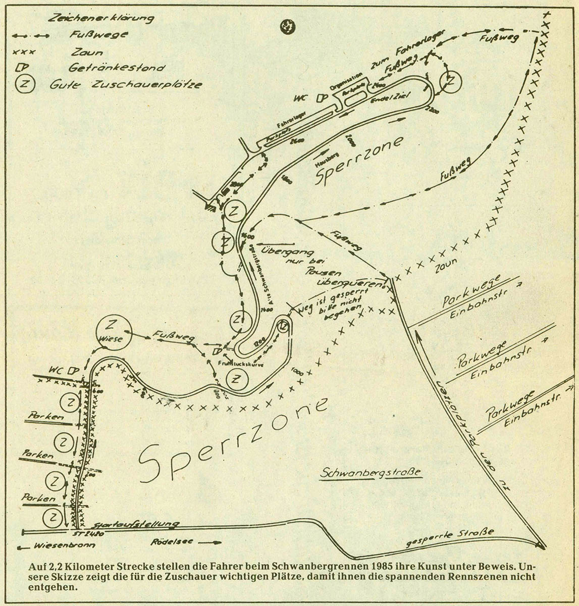07.07.1985 - Schwanberg Streckenskizze Programmheft Starterliste Alle Ergebnisse: Nennungsliste Ergebnis Rennen