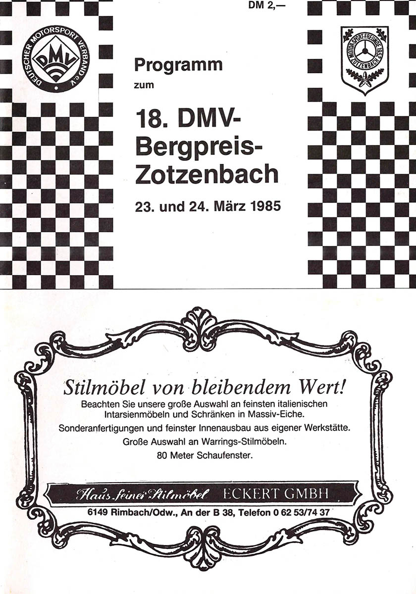 24.03.1985 - Zotzenbach Streckenskizze Programmheft Starterliste Alle Ergebnisse: Nennungsliste Ergebnis Rennen