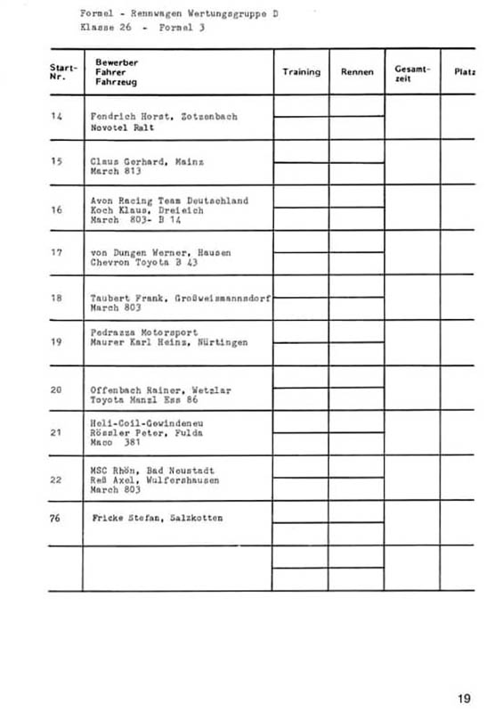 13.07.1986 - Handstein Streckenskizze Programmheft Starterliste Alle Ergebnisse: Nennungsliste Ergebnis Rennen