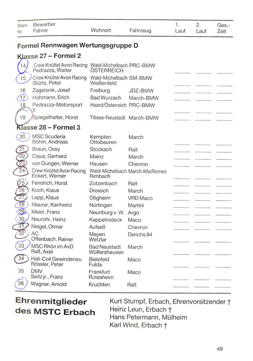 27.04.1986 - Krähberg Streckenskizze Programmheft Starterliste Alle Ergebnisse: Nennungsliste Ergebnis Rennen
