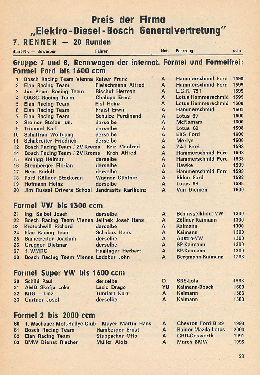 23.05.1976 - Salzburg (4.Lauf Österreichische Rennwagen Meisterschaft) Streckenskizze Programmheft Starterliste Alle Ergebnisse: keine Formel 3 am Start