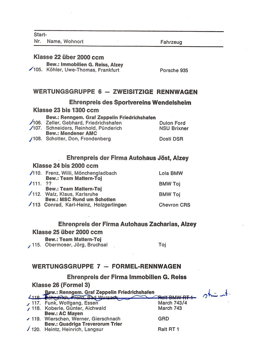 13.08.1978 - Teufelsrutsch Streckenskizze Programmheft Starterliste Alle Ergebnisse: Nennungsliste Ergebnis Rennen