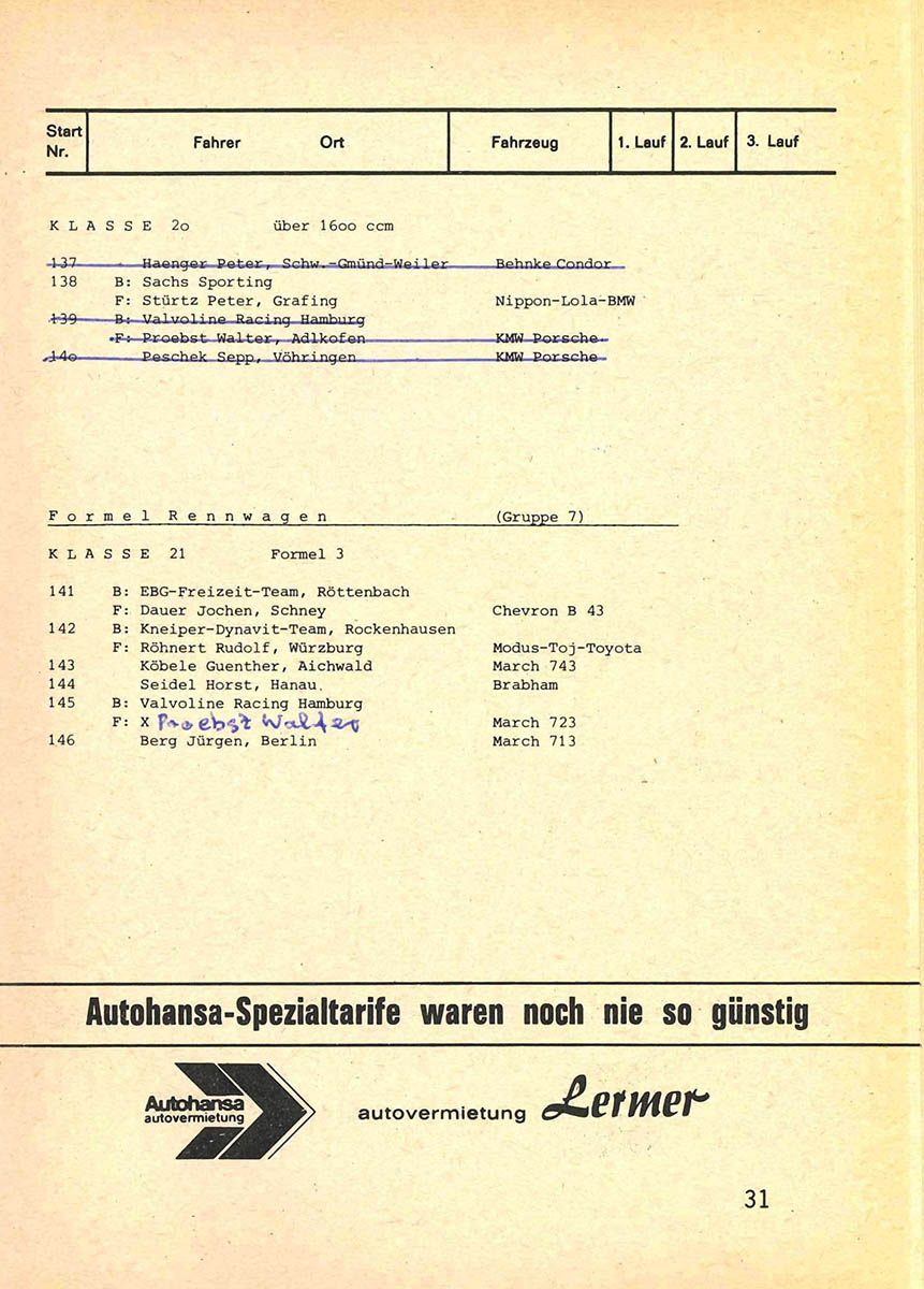 30.07.1978 - Bayerwald Streckenskizze Programmheft Starterliste Alle Ergebnisse: Nennungsliste Ergebnis Rennen