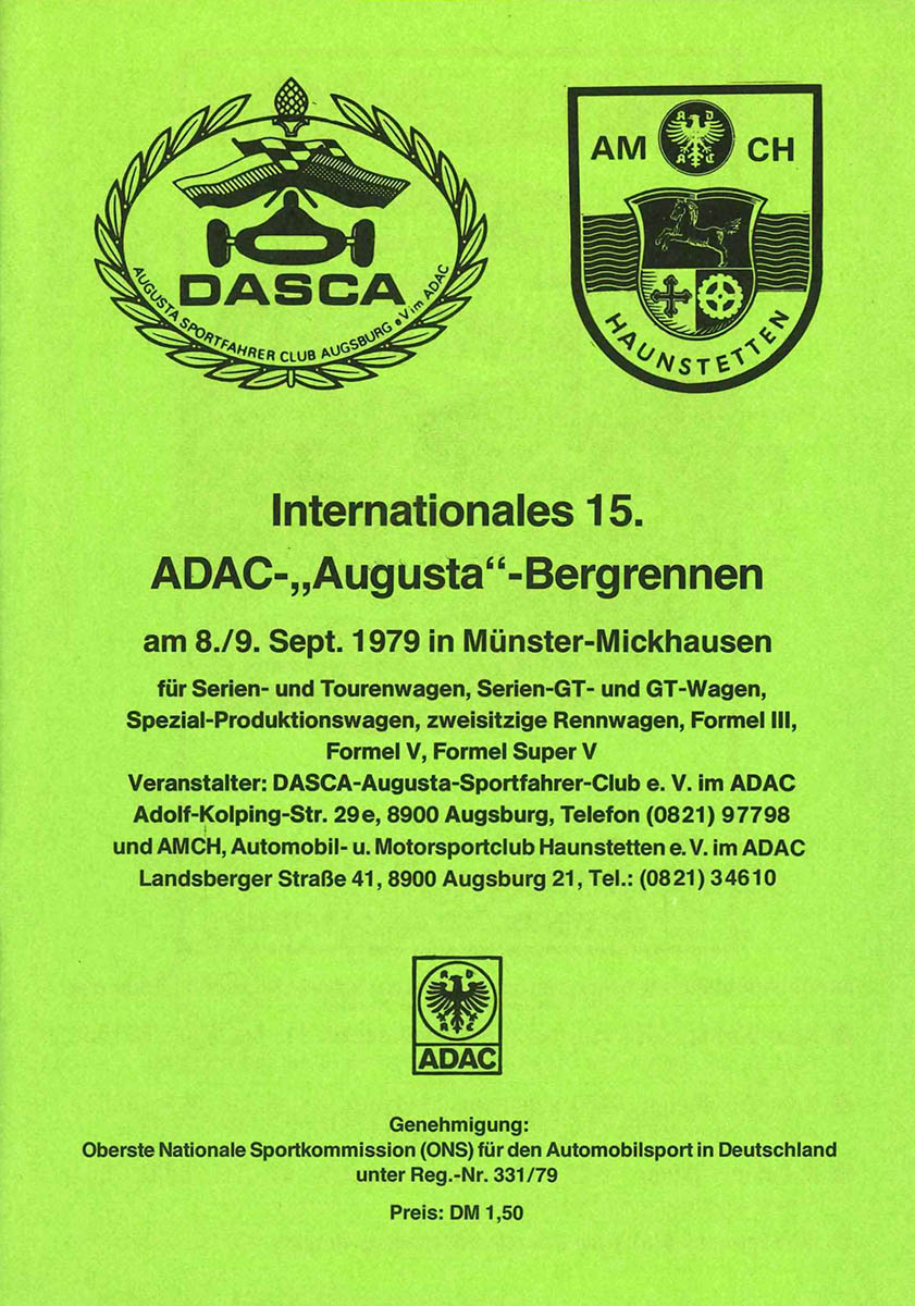 09.09.1979 - Augusta Streckenskizze Programmheft Starterliste Alle Ergebnisse: Nennungsliste Ergebnis Rennen
