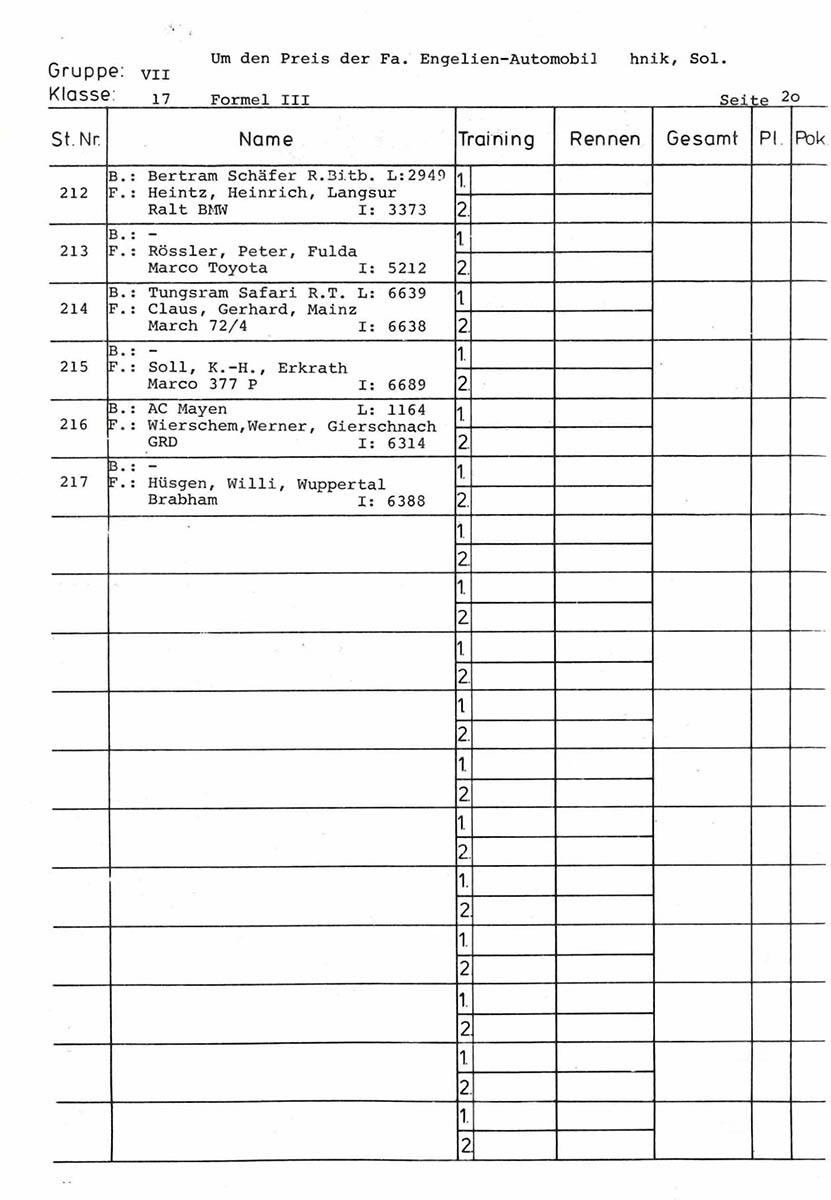 23.09.1979 - Klingenring Streckenskizze Programmheft Starterliste Alle Ergebnisse: Nennungsliste Ergebnis Rennen
