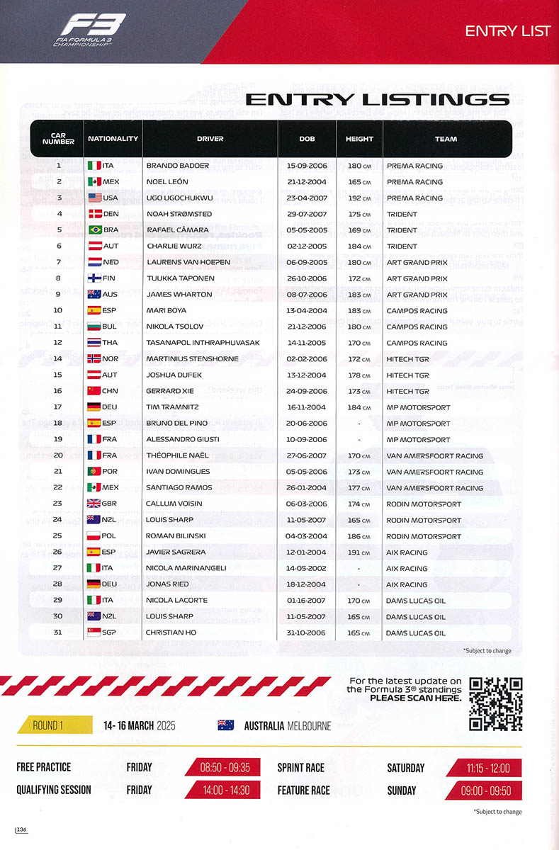 16.03.2025 - Melbourne 1.+2.Lauf FIA Formula 3 Championship Streckenskizze Programmheft Starterliste Alle Ergebnisse: Vorbericht Nennungsliste Sprint Race Ergebnis freies Training Bericht freies Training Ergebnis Zeittraining Original Zeitnahme Bericht Zeittraining Startaufstellung Sprint Race Ergebnis Sprint Race Original Zeitnahme Rundentabelle Sprint Race Bericht Sprint Race Nennungsliste Feature Race Startaufstellung Feature Race Ergebnis Feature Race Original Zeitnahme Rundentabelle Feature Race Bericht Feature Race